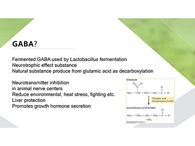 艾宁诺-发酵氨基丁酸 由乳酸菌发酵GABA产生的神经营养效应物质和谷氨酸脱羧基天然物质。 γ-氨基丁酸(GABA)是一种重要的功能性非蛋白质氨基酸,也是动物中枢神经系统内最主要的抑制性神经递质。